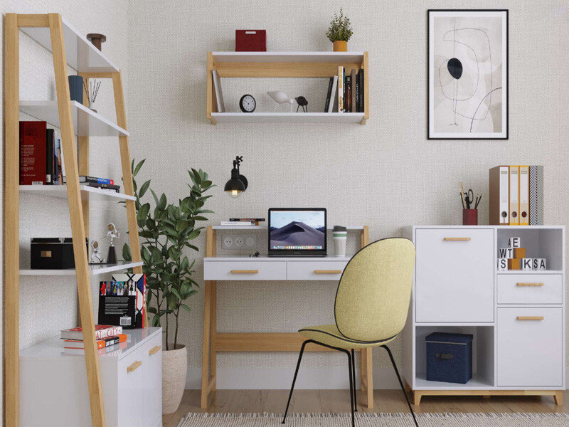Birou Steka, 100x55x92, alb/ stejar piatra