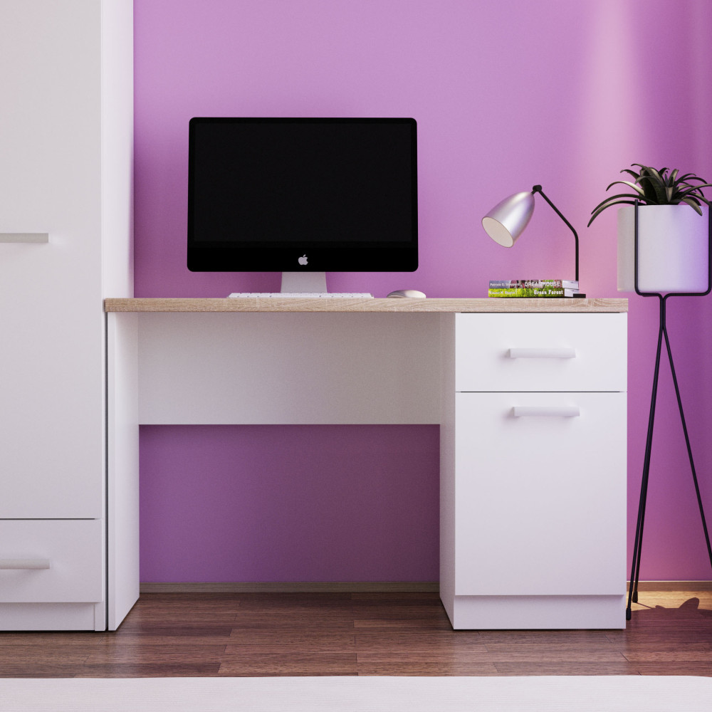 Biroul Norton este dotat cu un sertar și un dulap pentru depozitare suplimentară, ideal pentru organizarea eficientă a spațiului de lucru.