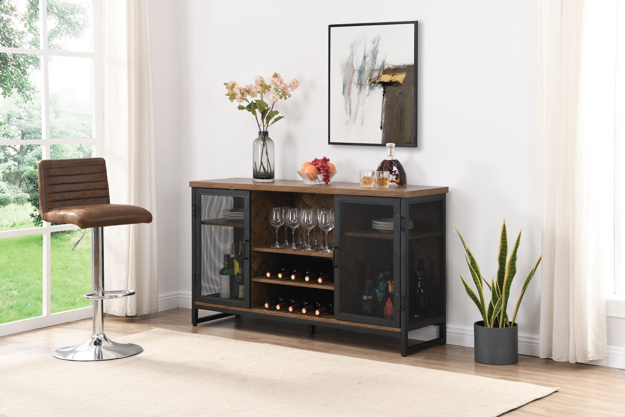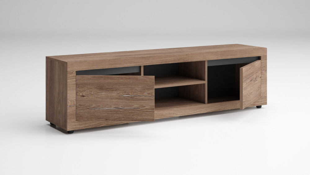 Comoda MAVIS-2 este o piesă de mobilier elegantă și rafinată, ce îmbină perfect funcționalitatea cu un stil sofisticat. Blatul și rafturile din lemn de nuc pun în valoare textura naturală, iar compartimentarea inteligentă oferă un spațiu optimizat pentru depozitarea sticlelor de vin. Modelul include un suport integrat pentru sticle de vin, care le menține în poziția corectă și la îndemână. Cele două dulăpioare în finisaj antracit adaugă un contrast modern și subtil, completând armonios designul general.