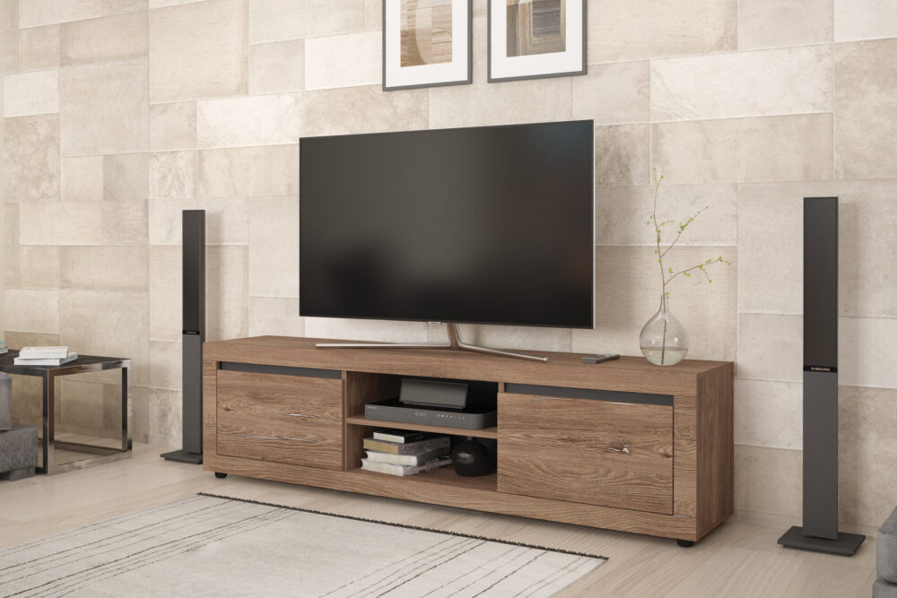 Comoda Mavis 2, 120×80, usi metalice, nuc/ antracit