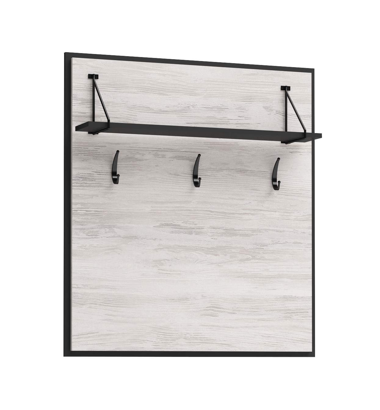 Cuier panou Evelin cu 3 agățători robuste și raft. Oferă suficient spațiu pentru haine, genți, căciuli și mănuși. Este o piesă de mobilier funcțională și estetică, perfectă pentru intrare, dormitor sau hol.