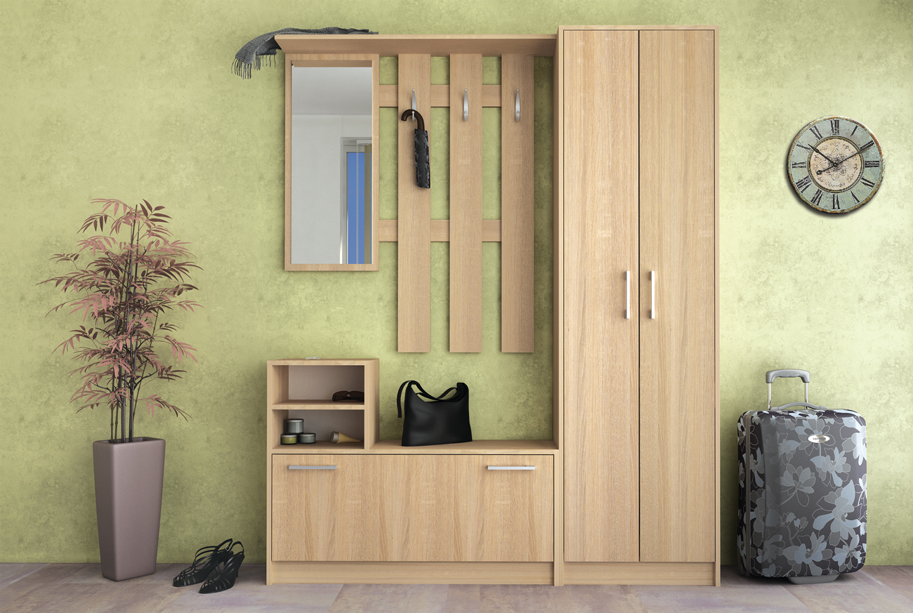 Cuierul Valya dispune de un dulap pentru haine, un dulăpior inferior pentru încălțăminte, un panou cu trei agățătoare, o oglindă mică, un raft superior suplimentar și două nișe pentru obiecte mici.