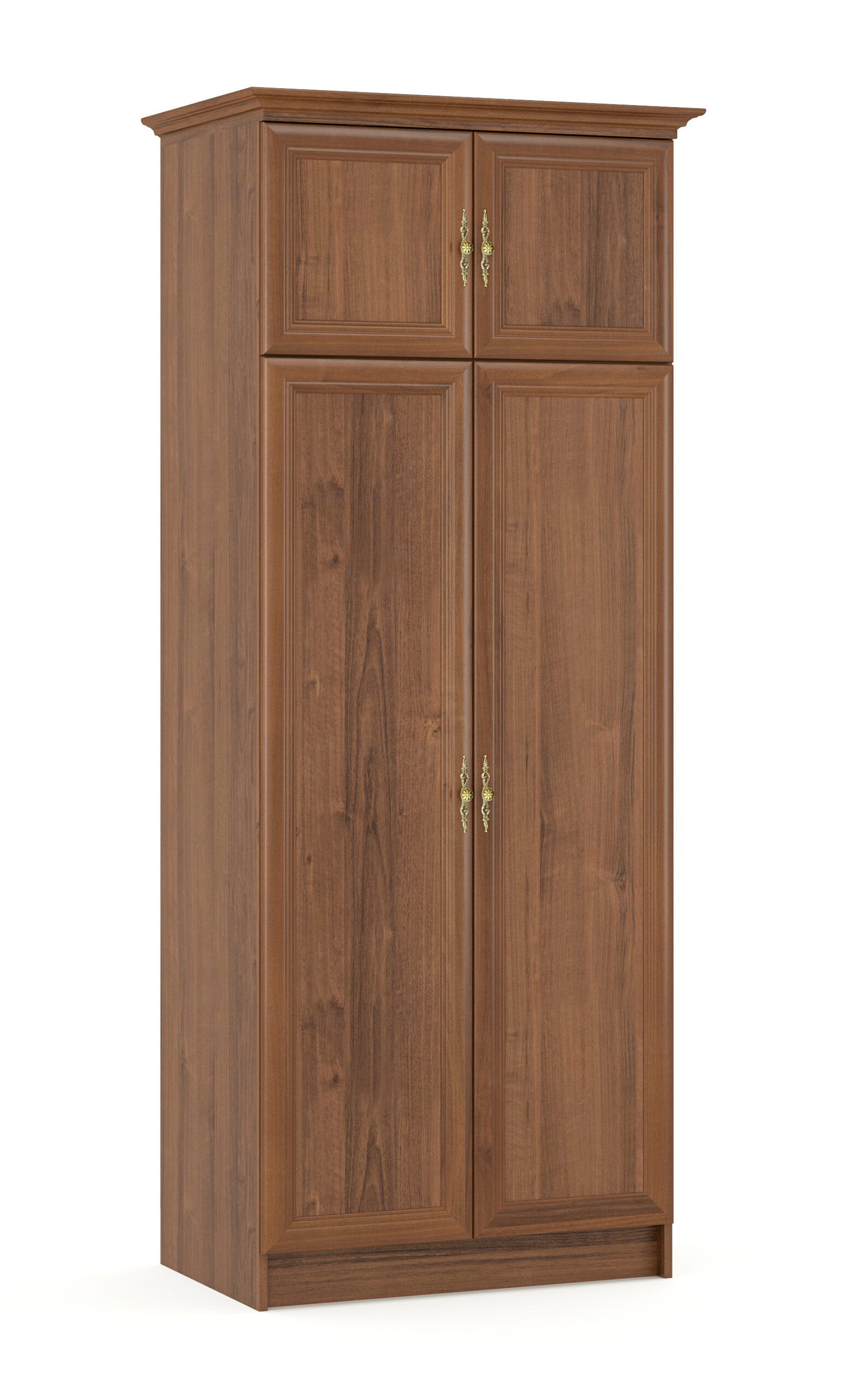 Dulapul Baron 2D nuc este o piesă de mobilier de excepție, care îmbină cu succes stilul clasic cu funcționalitatea modernă. Cele două uși ascund un spațiu generos, prevăzut cu o bară pentru umerașe, ideală pentru haine lungi, iar în spatele celor două uși mai mici se află un raft superior, perfect pentru depozitarea articolelor mai mici sau a accesoriilor. Materialele de calitate și construcția solidă garantează durabilitate și rezistență în timp.
