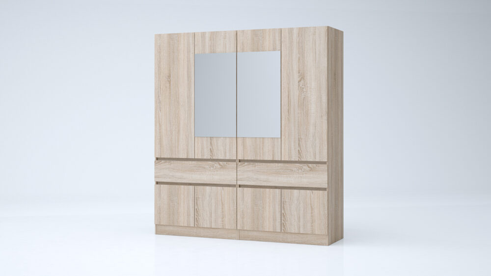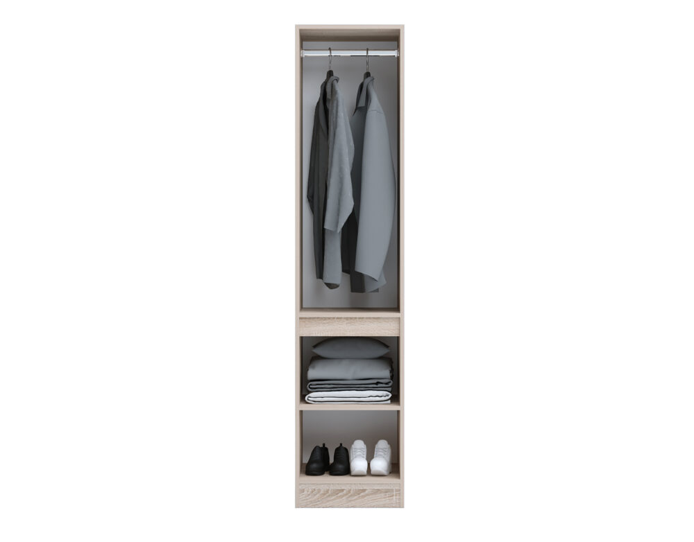Dulapul Evelin M23 de dimensiuni reduse, este o piesă de mobilier compactă și stilată, perfectă pentru spații mici. Finisajul elegant, în combinația de stejar Blanco și Antracit, îi conferă un aspect modern și contemporan, ușor de integrat în diferite stiluri de amenajare interioară. Funcționalitatea sa este asigurată de un sertar spațios, ideal pentru depozitarea obiectelor mici, și o ușă ce se închide lent, datorită mecanismul soft-close. Dimensiunile sale compacte îl fac potrivit pentru holuri, dormitoare mici sau alte spații restrânse.