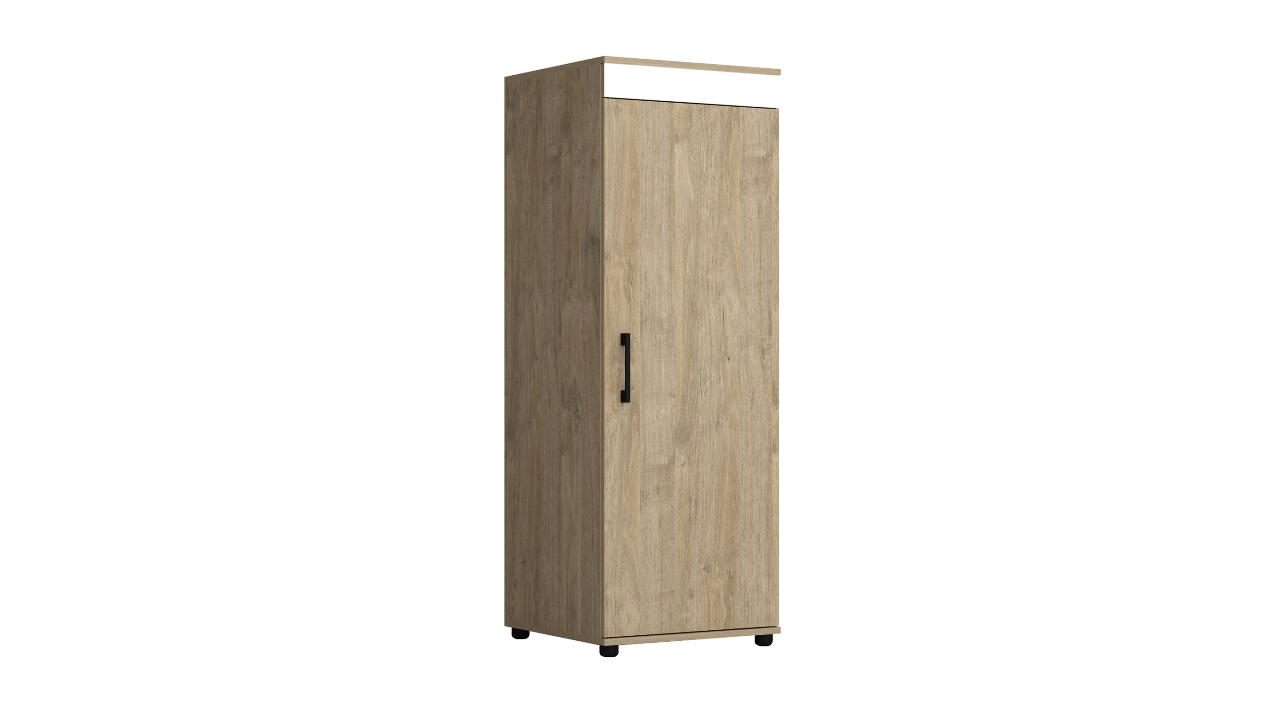 Dulapul Kris M10 este compact și practic, ideal pentru camera copiilor. Dispune de o ușă și trei rafturi pentru organizarea eficientă a hainelor și accesoriilor. Design modern și funcțional, potrivit pentru orice spațiu.