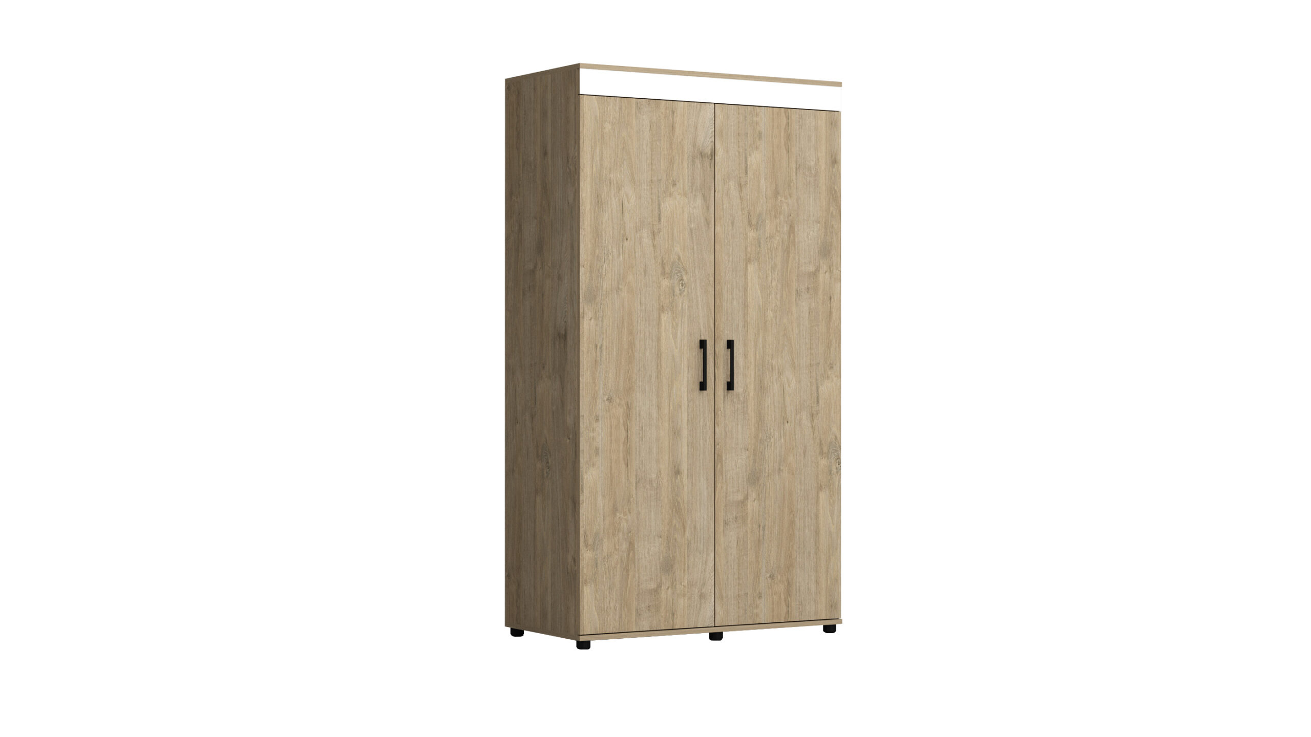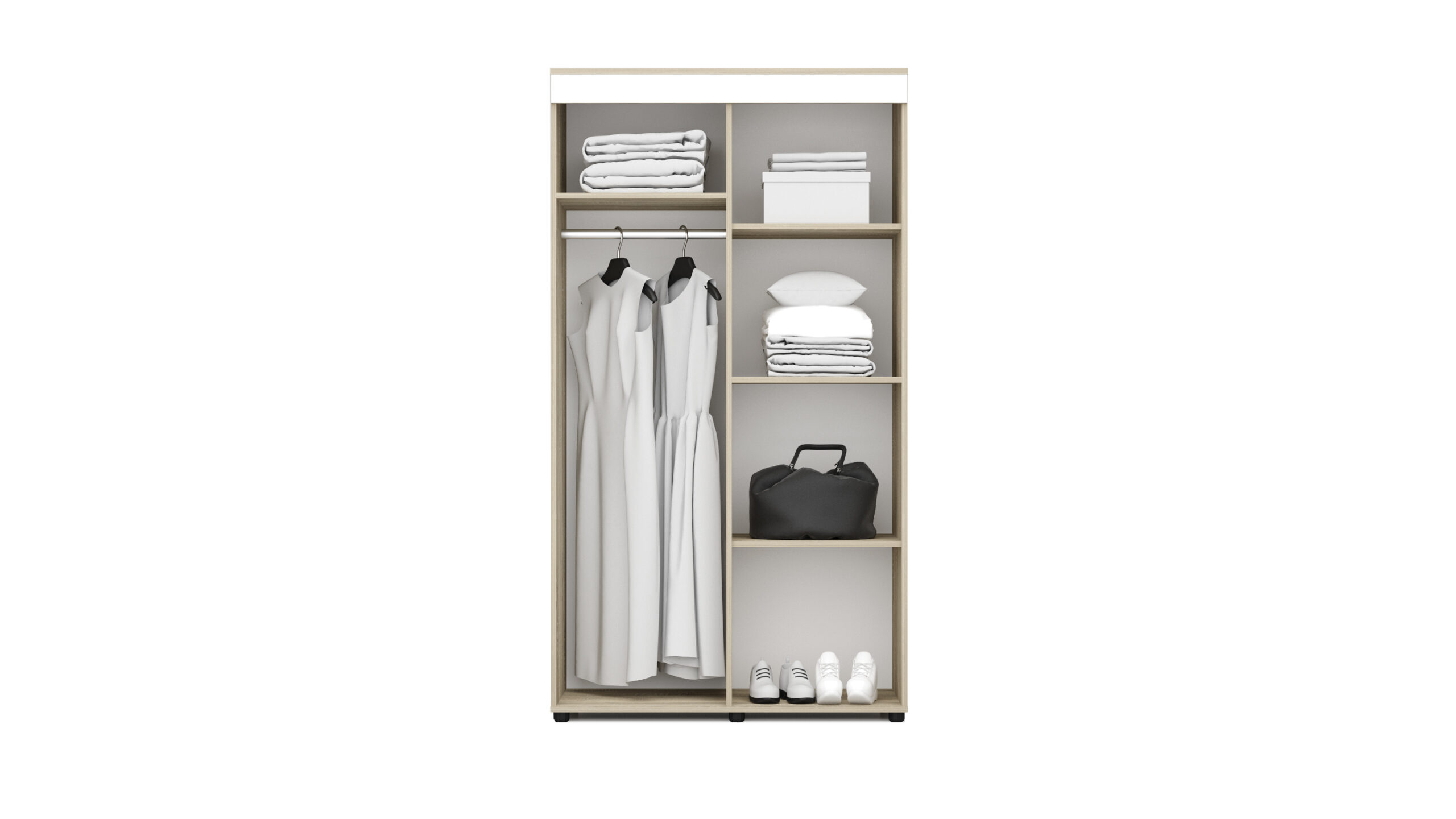 Dulapul Kris M13 este compact și practic, ideal pentru camera copiilor. Dispune de două uși, patru rafturi de dimensiuni diferite și o bară pentru umerașe, oferind o organizare eficientă a hainelor și a accesoriilor.