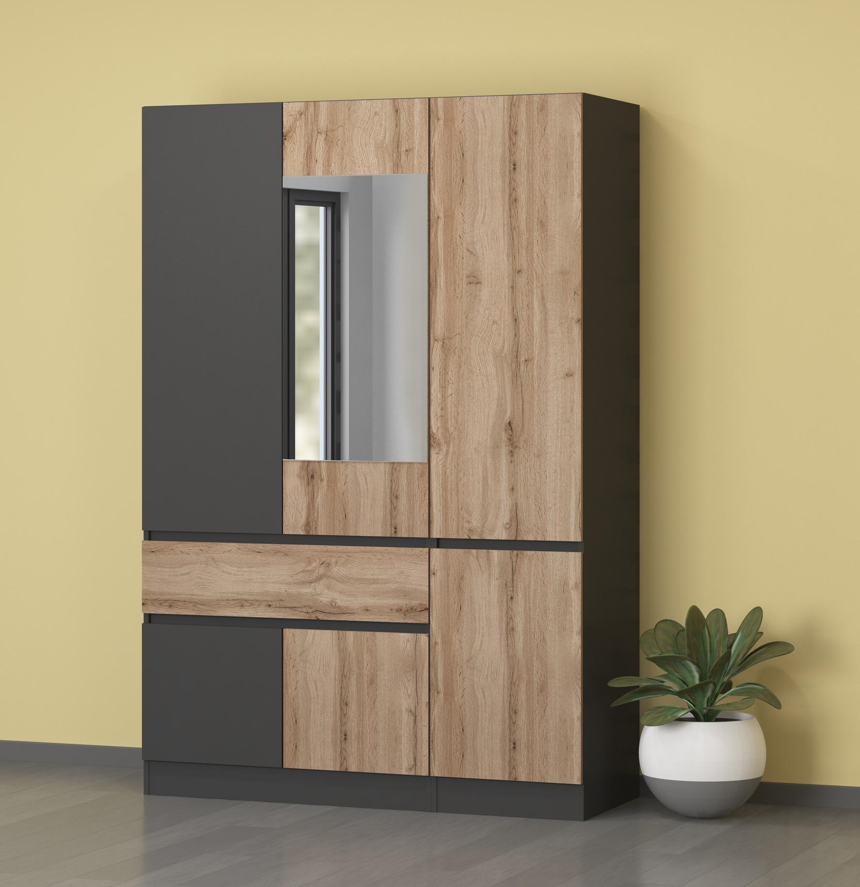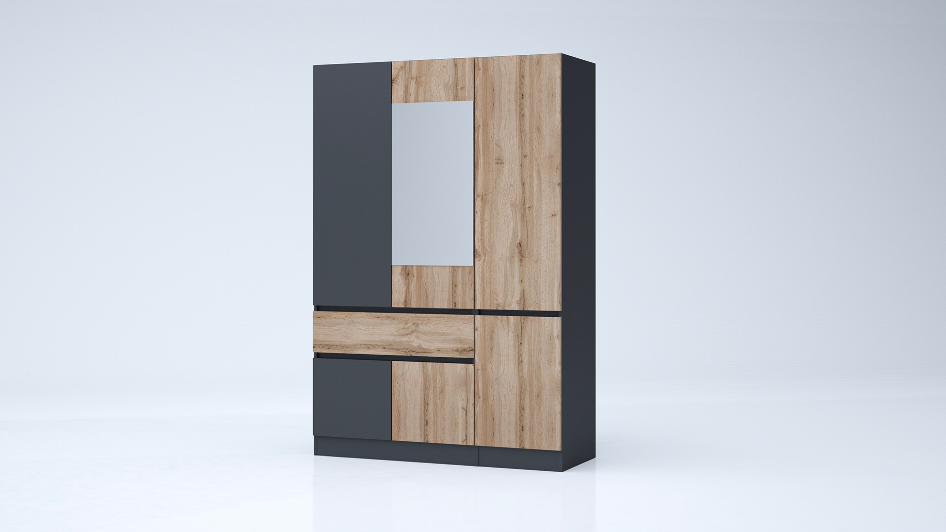 Dulapul Leo 3 este o combinație a unui dulap Leo 1 și un dulap Leo 2 cu oglindă incorporată. Compartimentele superioare au 2 bare pentru umerașe, iar cele inferioare au un sertar și un spațiu pentru haine pliate, pilote sau încălțăminte. Se pot procura rafturi opționale pentru un plus de organizare. Ușile sunt prevăzute cu mecanism soft-close.