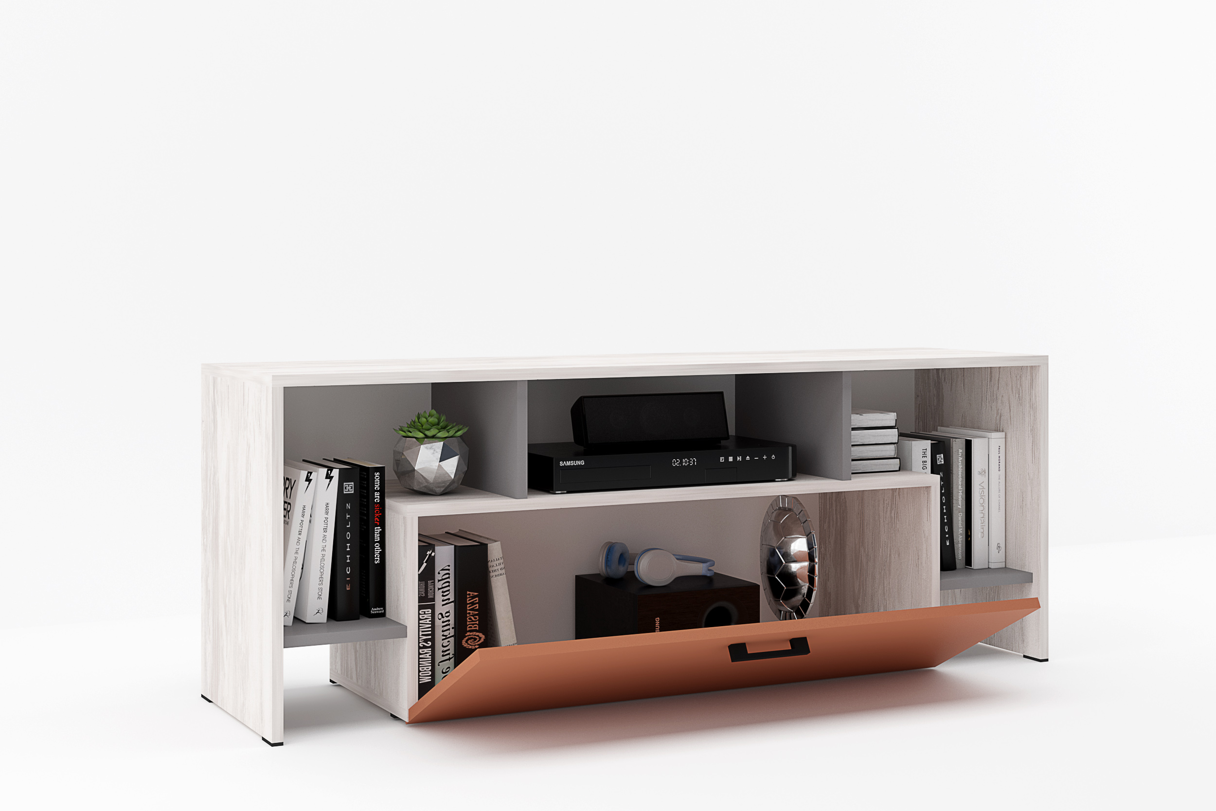 Etajera Sydney M10 este o piesă de mobilier modernă și compactă, ideală pentru optimizarea spațiului. Aceasta combină funcționalitatea cu un design elegant și dispune de trei nișe deschise, perfecte pentru expunerea decorațiunilor sau cărților, și de un dulapior închis cu ușă.
