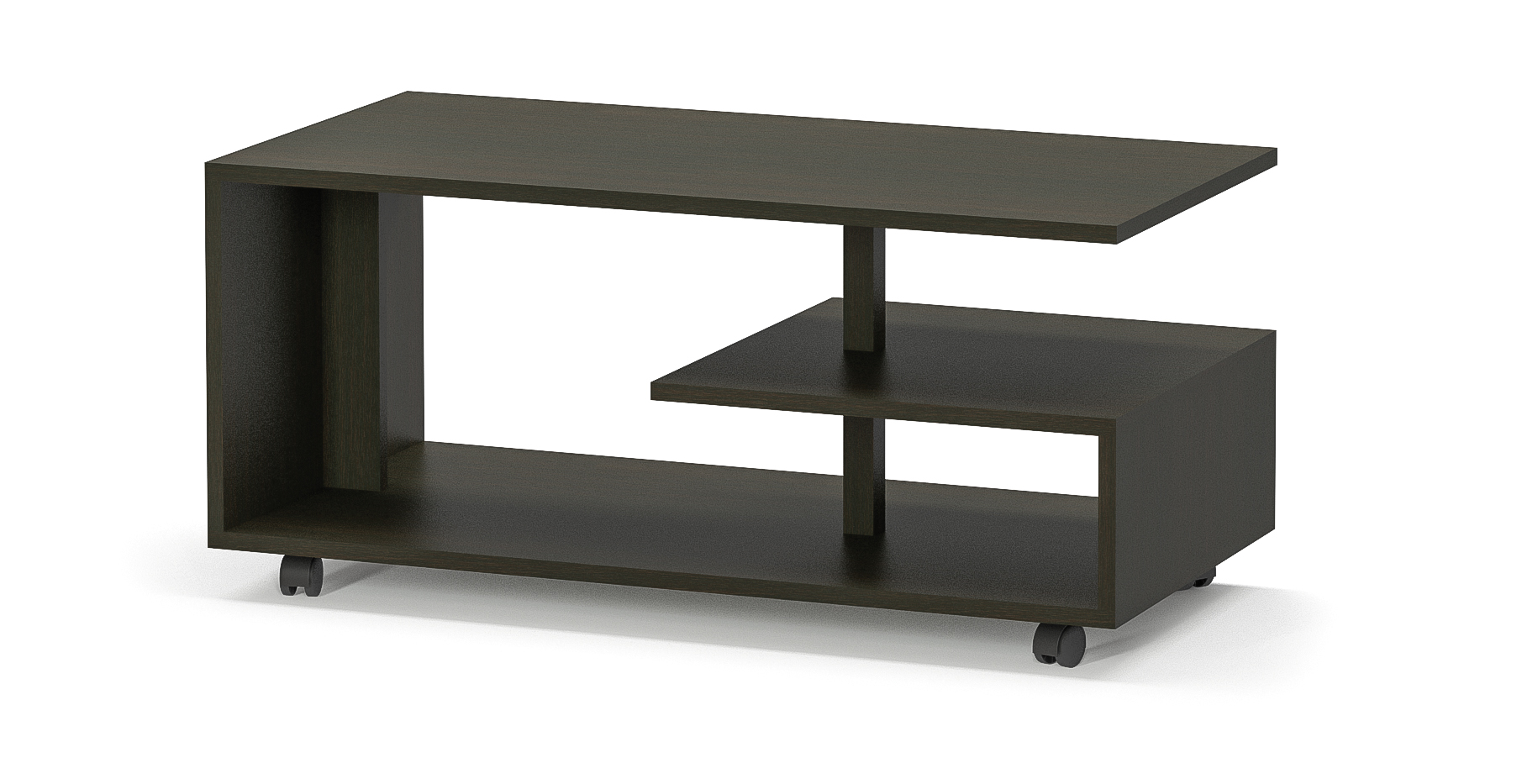 Măsuța de cafea Turin, finisată în culoarea Wenge, se distinge prin designul său inedit și funcționalitatea sa sporită. Cele trei nivele oferă un spațiu generos de depozitare pentru diverse obiecte. Prezența roților facilitează deplasarea ușoară a măsuței, făcând-o extrem de practică și versatilă.