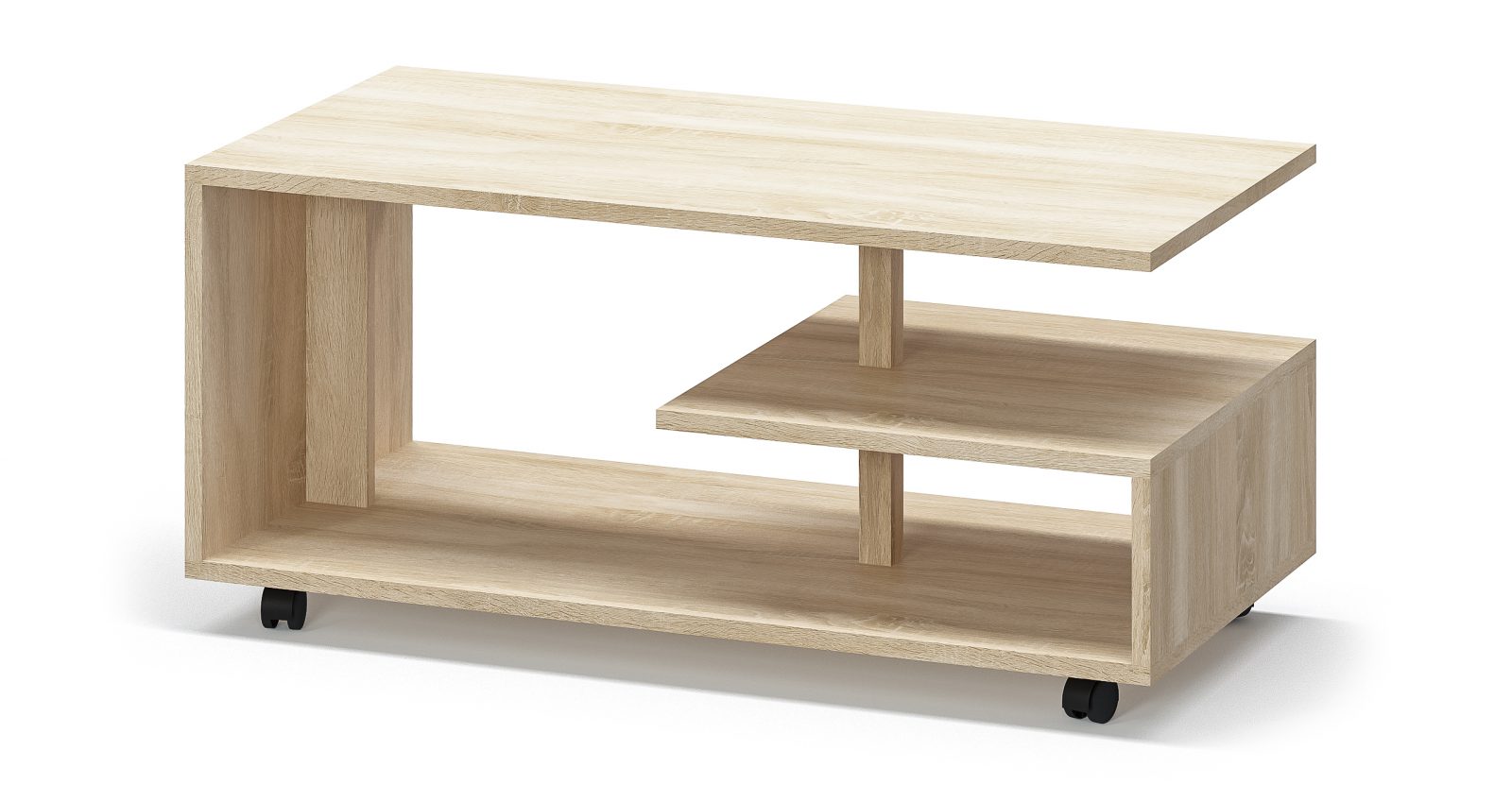 Măsuța de cafea Turin stejar sonoma, se distinge prin designul său inedit și funcționalitatea sporită. Cele trei nivele oferă un spațiu generos de depozitare pentru diverse obiecte. Prezenta roților facilitează deplasarea ușoară a măsuței, făcând-o extrem de practică și versatilă.