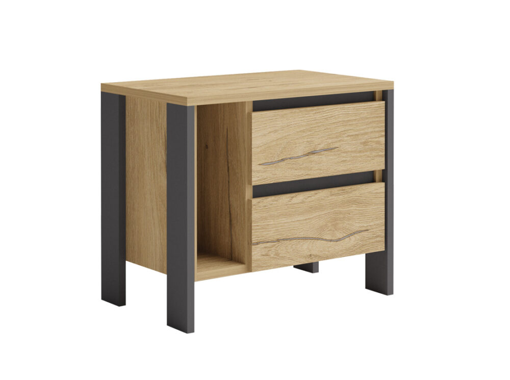 Noptiera Leo 3 este compactă, simplă, cu un design modern și funcțional, cu picioare înalte, fiind dotată cu un sertar și o nișă pentru depozitare eficientă. Este ideală pentru dormitor, oferind un spațiu practic pentru obiectele esențiale.