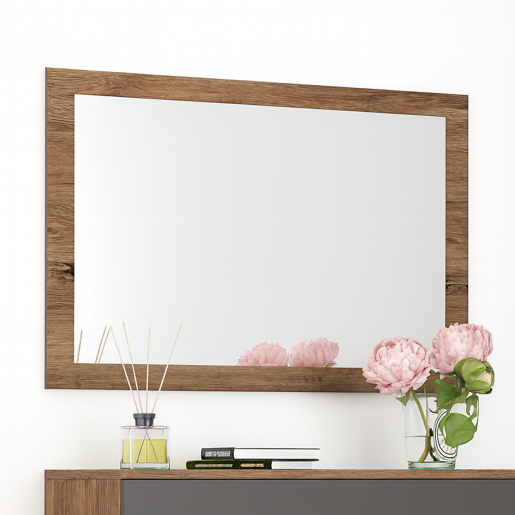 Oglindă dreptunghiulară cu margini: eleganță minimalistă și funcționalitate perfectă. Designul său simplu și rafinat, accentuat de marginile grafit, se integrează ușor în orice dormitor, adăugând o notă de stil modern. Practică și ușor de integrat, oglinda reprezintă un accesoriu esențial pentru o viața cotidiană confortabilă.