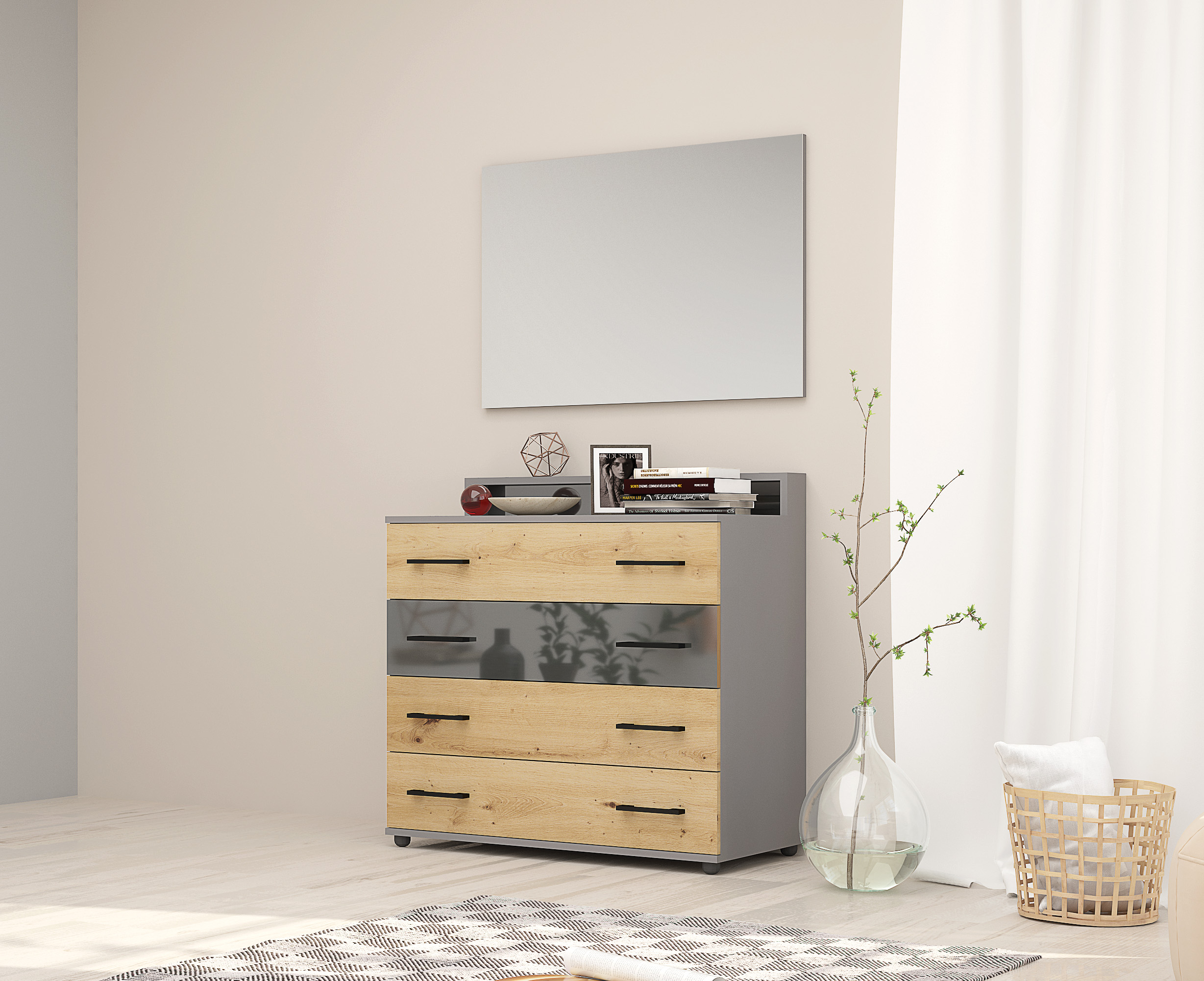 Oglinda dreptunghiulară Monza combină rezistența cu rafinamentul. Designul său simplu și elegant se integrează perfect în orice  dormitor, adăugând o notă de sofisticare spațiului.