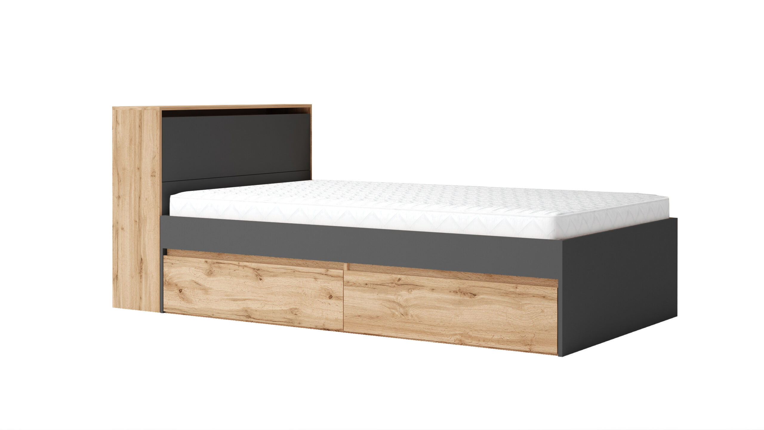 Pat Leo 120, 120×200, 2 sertare, lada depozitare, stejar wotan/ antracit