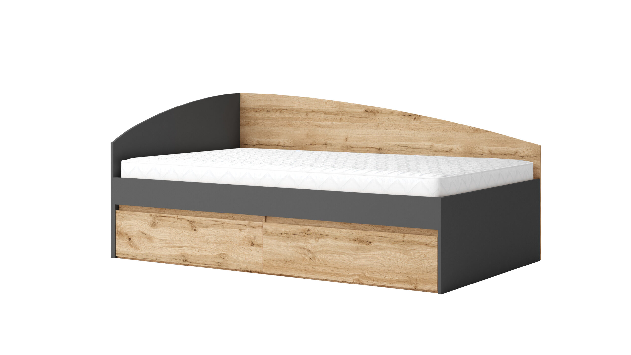 5Pat single Leo 120 cu tablie laterală și de capăt, potrivit pentru saltea 120×200 cm. Prevăzut cu 2 sertare integrate spațioase și ușor accesibile asigură loc amplu pentru păstrarea lenjeriei de pat, hainelor sau altor obiecte personale. Design simplu și funcțional, potrivit pentru diverse amenajări interioare.