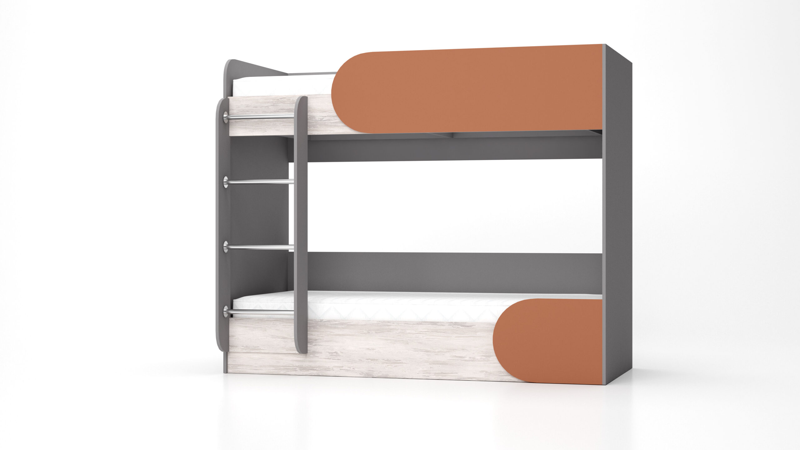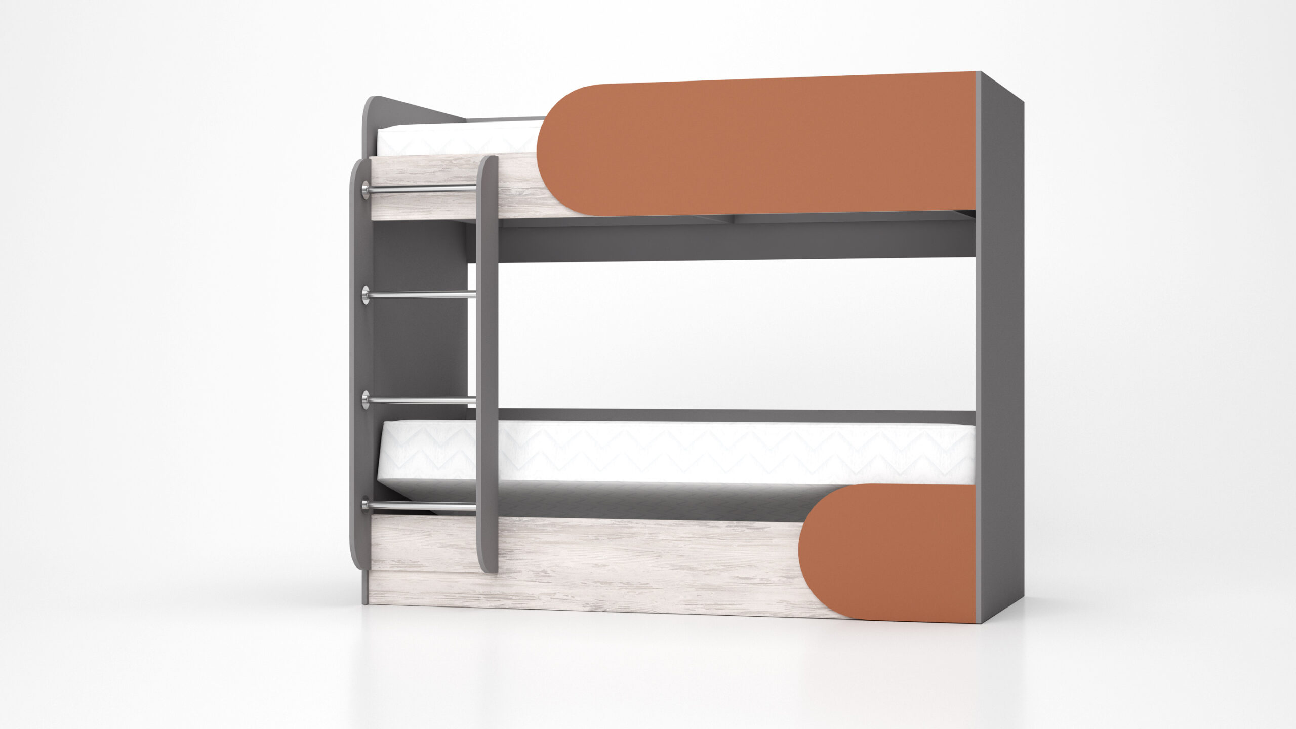 Patul supraetajat Riki este o soluție ideală pentru amenajarea camerei copilului sau a spațiilor mici. Patul inferior dispune de un spațiu generos de depozitare sub saltea, accesibil cu ajutorul unui mecanism de ridicare cu amortizoare, ușor de utilizat, ideal pentru păstrarea lenjeriei, păturilor sau altor obiecte. Prezența scării asigură accesul facil la patul superior, iar tăblia laterală oferă siguranță suplimentară.