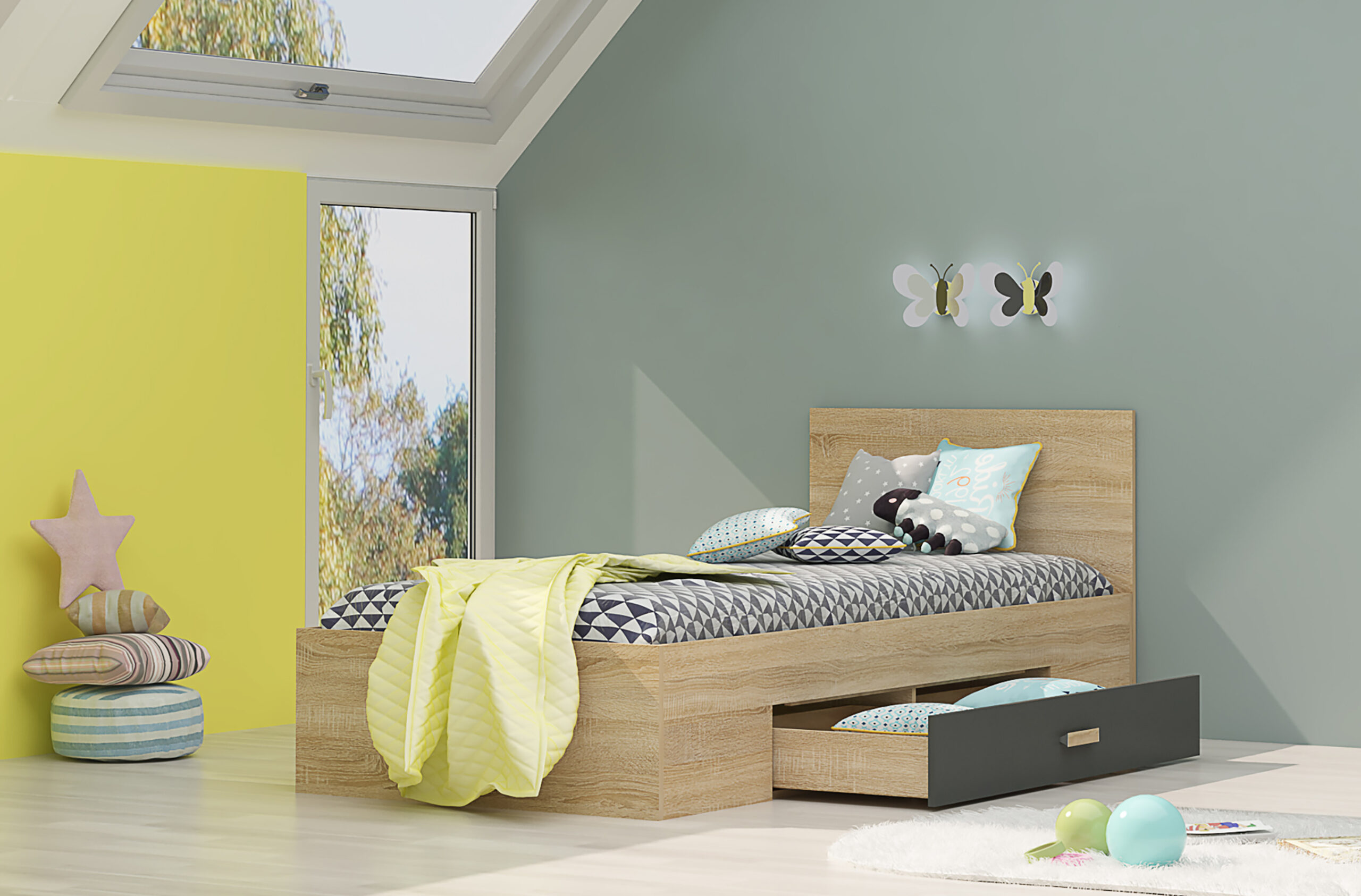 Patul este potrivit pentru saltea 90×200.