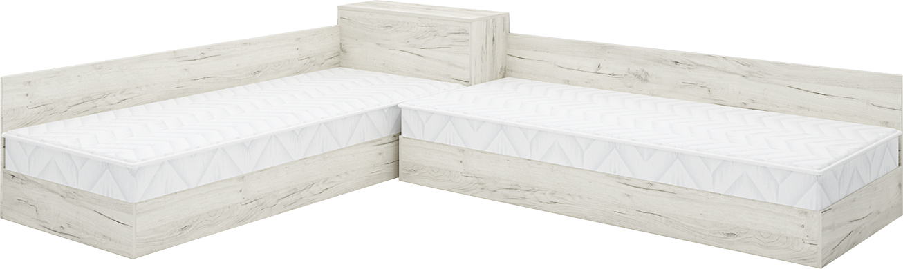 Două paturi individuale, proiectate să fie așezate în colț, maximizând astfel spațiul disponibil. Paturile dispun de o ladă de depozitare comună și, fiecare, de câte un spațiu suplimentar de depozitare sub saltea, accesibil printr-un mecanism de ridicare cu amortizoare pentru o utilizare ușoară și silențioasă. Designul este minimalist, cu linii curate și simple, ușor de integrat în orice stil de amenajare.