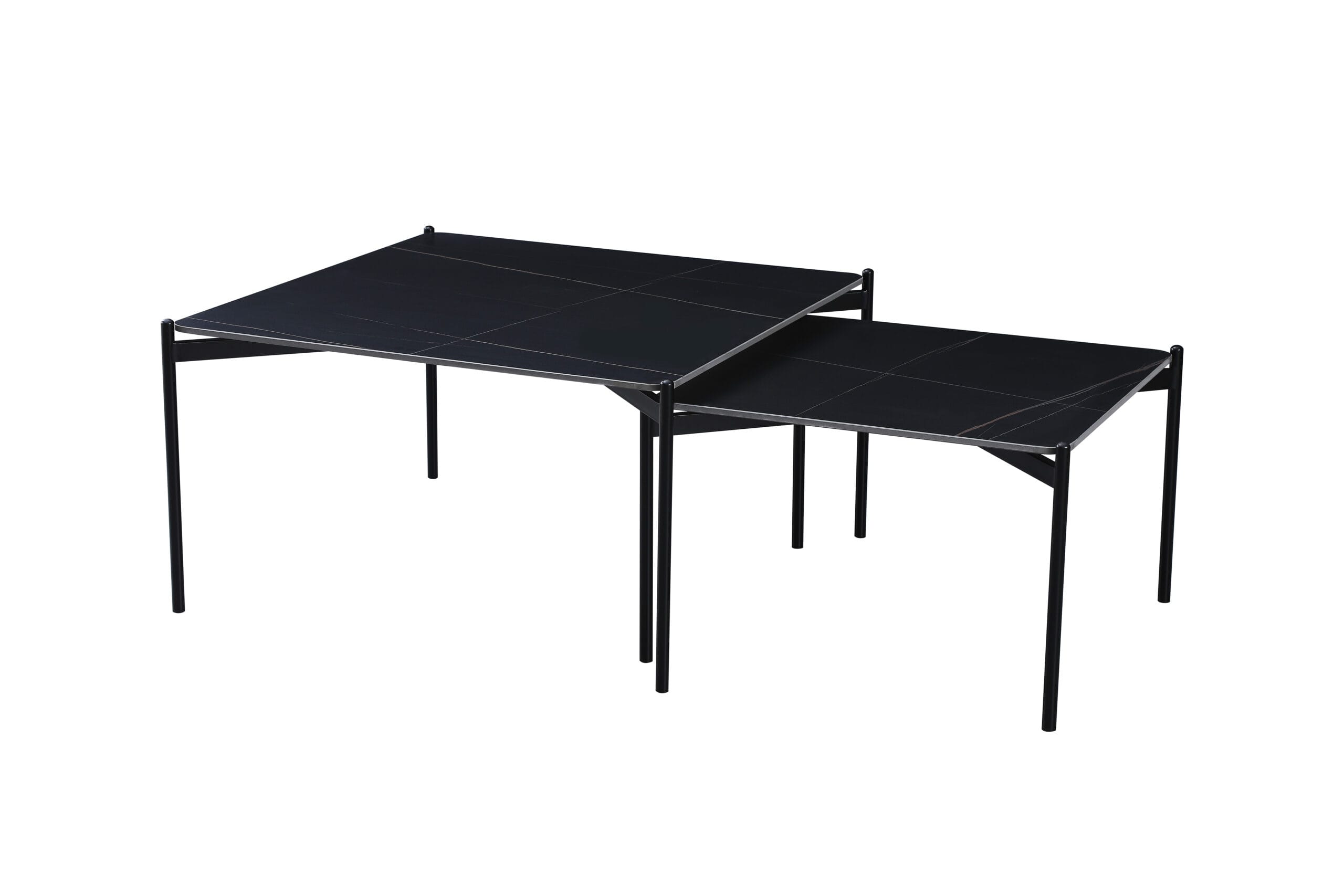Set 2 masute de cafea Eliza, 80x80x45/ 60x60x40, marmura neagra/ negru