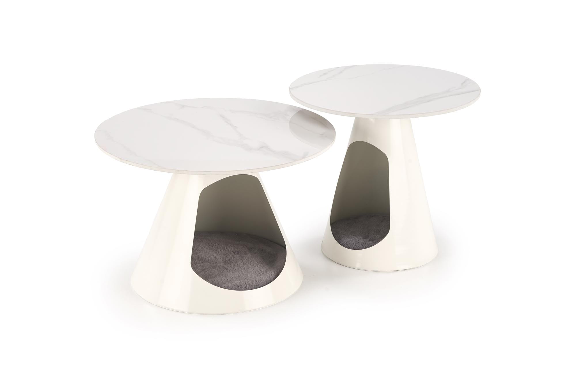 Setul de 2 măsuțe de cafea Osario realizate din piatră sinterizată și metal, exprimă o combinație de rezistență și eleganță. Suprafețele netede ale pietrei sinterizate creează un aspect curat și modern, iar picioarele metalice oferă stabilitate și durabilitate. Forma compactă și designul minimalist le fac potrivite și pentru spații mici, fără a compromite stilul și funcționalitatea.