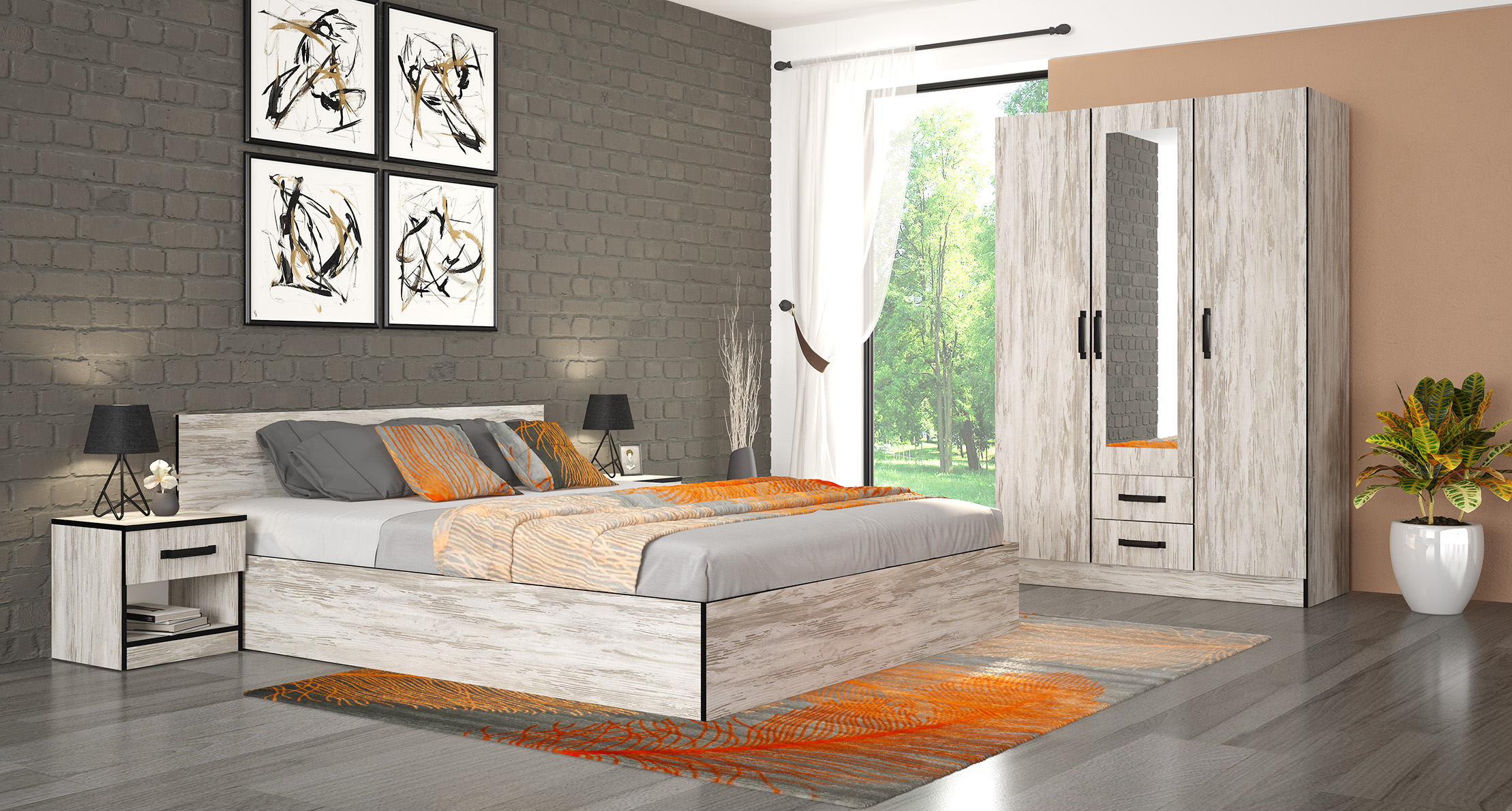 Setul de dormitor Alma Vintage propune un design modern și funcțional, perfect pentru cei care apreciază confortul și organizarea.