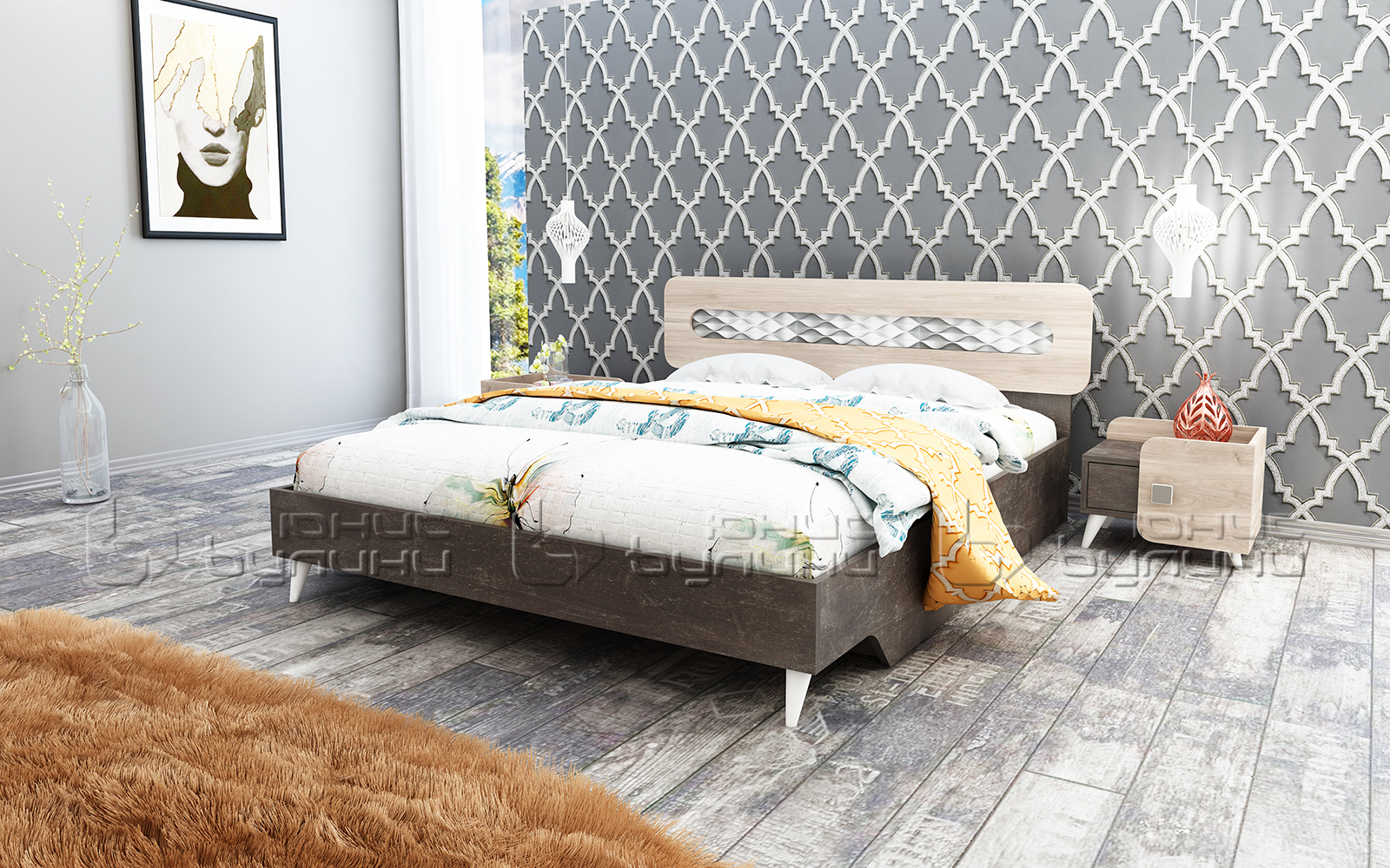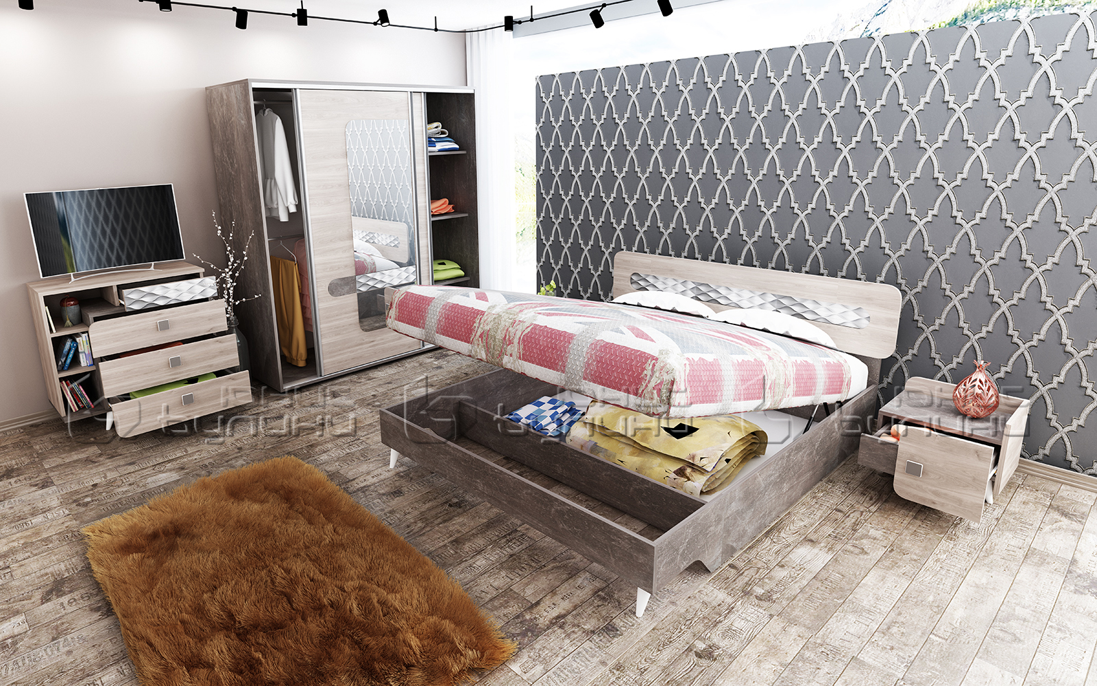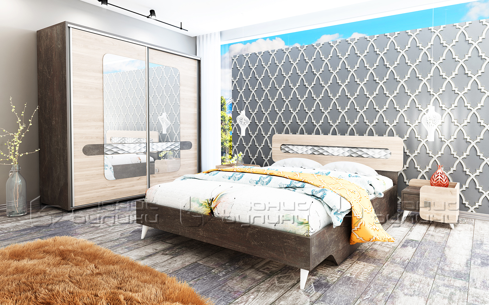 Set dormitor Forest, stejar allen/ beton inchis