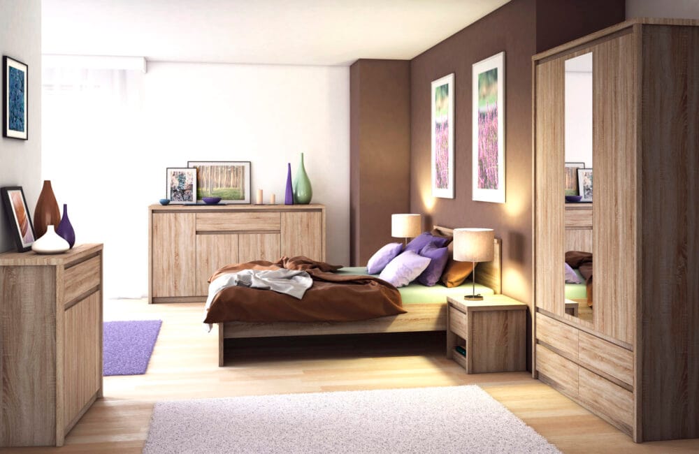 Patul dublu Torino este o piesa de mobilier moderna si practica, proiectata pentru a oferi atat confort, cat si un spatiu de depozitare optimizat. Mecanismul de ridicare cu amortizoare silentioase si fiabile asigura acces usor si sigur la spatiul generos de depozitare de sub saltea, ideal pentru pastrarea lenjeriei, paturilor sau a altor obiecte. Doua noptiere integrate, fiecare cu cate 1 usa, ofera un plus de confort si functionalitate. Culoarea stejar Sherman/ pin Allen, cu ornament gratios, creeaza un aspect modern si elegant, integrandu-se usor in diverse stiluri de amenajare.